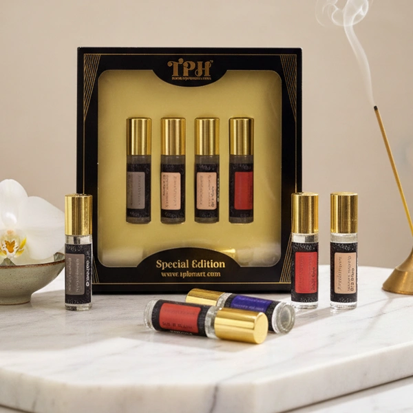 Celebrate life’s special moments with the gift of lasting fragrance! This Signature Edition 4-in-1 Perfume Oil Set is the ultimate sensory indulgence, perfect for personal use or elegant gifting. Each set features four premium, long-lasting, and 100% alcohol-free Attar (Perfume Oil) roll-ons, presented in an exclusive designer box.