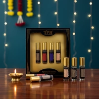 4 x 6.2ml Attar Roll-ons: A curated selection of concentrated, alcohol-free perfume oils. The roll-on applicator ensures a precise, mess-free application that lasts significantly longer than traditional sprays.